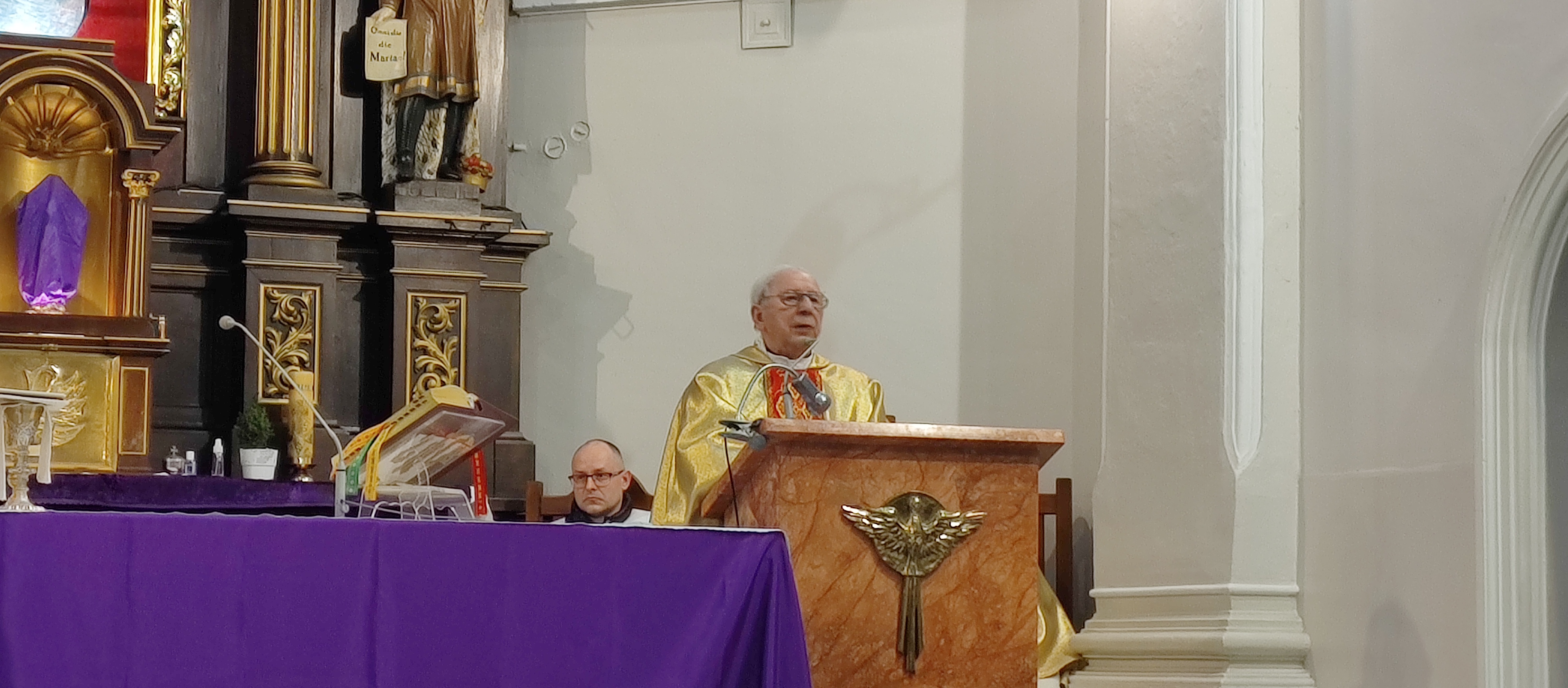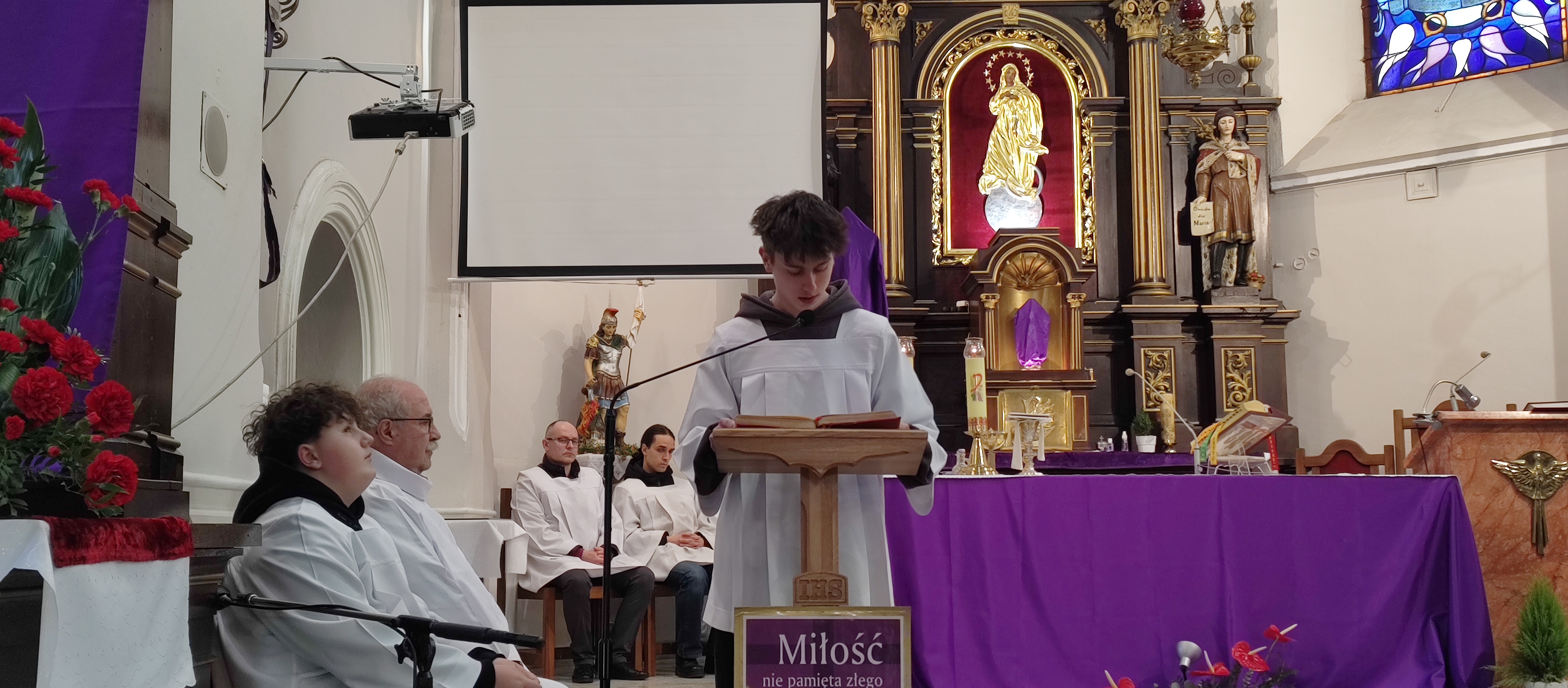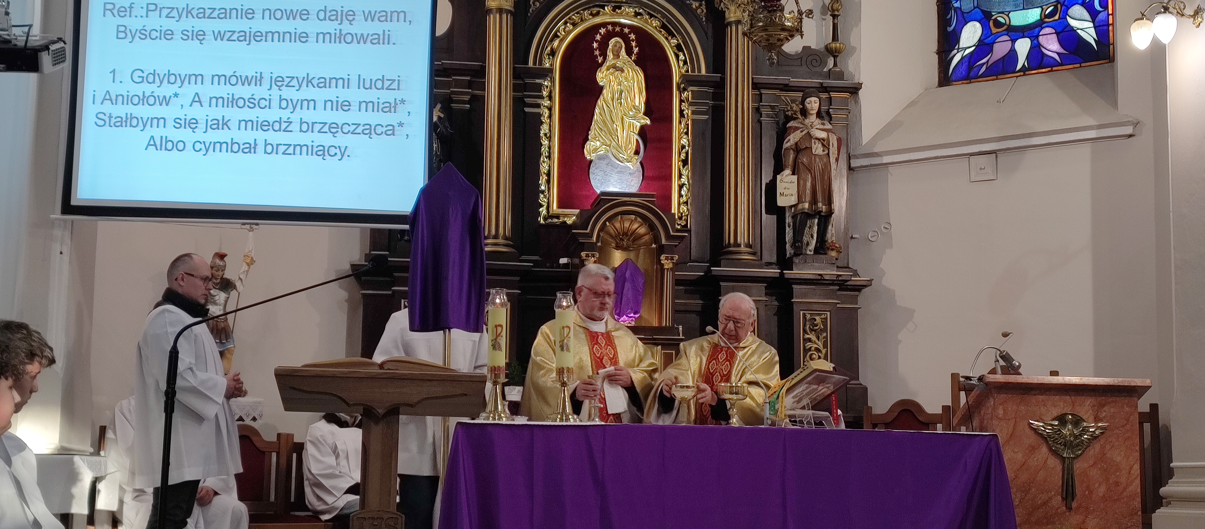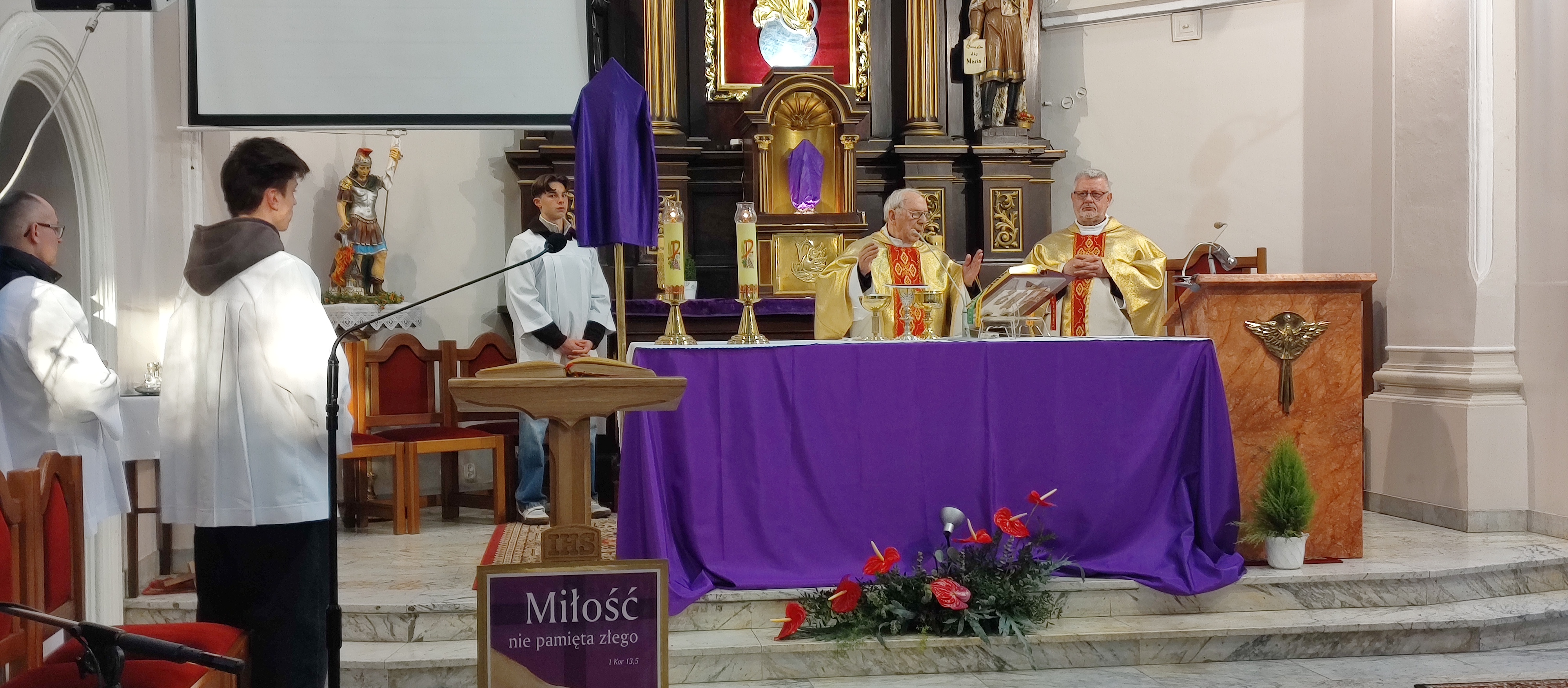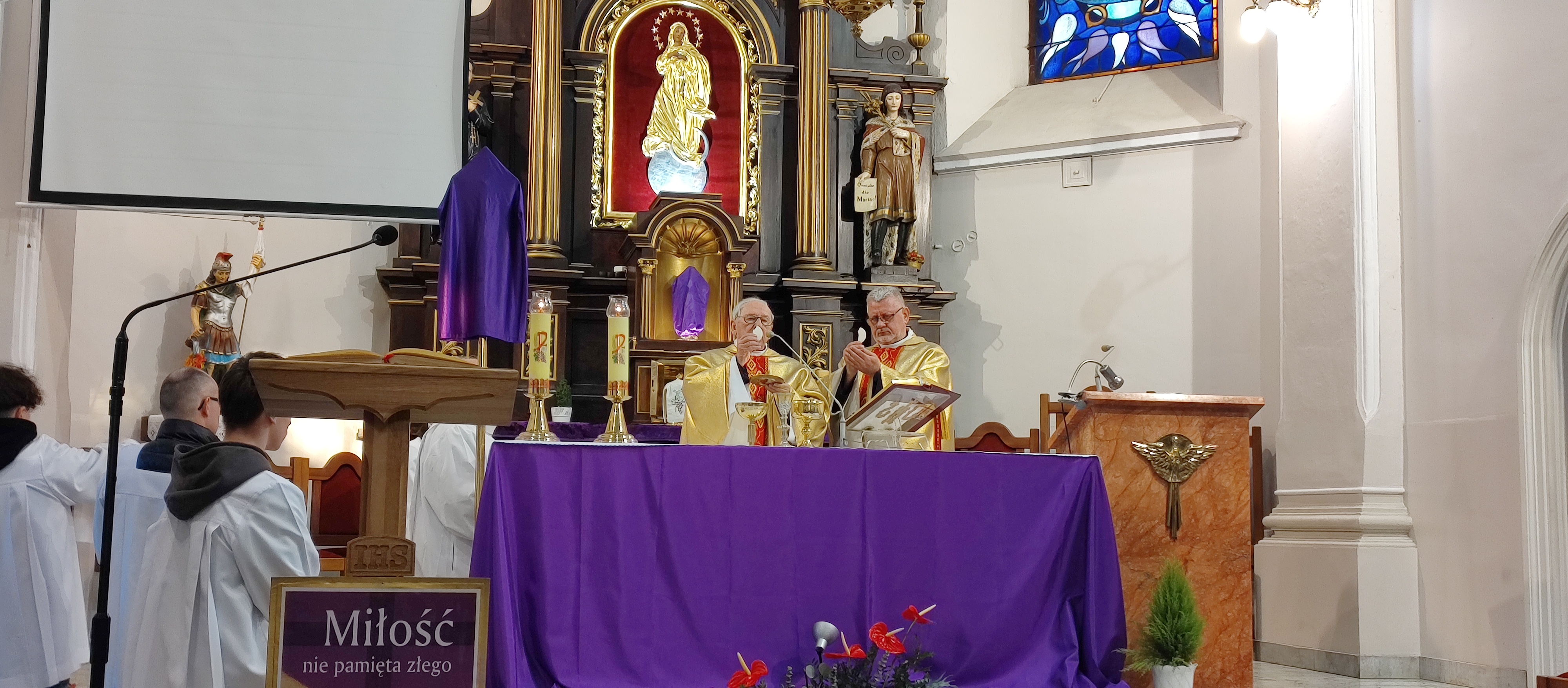 W Wielki Czwartek odprawiona została w naszym kościele Msza Wieczerzy Pańskiej. W tym roku 2 kwietnia 2026 księża z naszej parafii odprawiali uroczystą mszę w koncelebrze. W tym szczególnym czasie zamilkły dzwony a od tej pory używane zostały kołatki. KS. Kanonik Czesław Rosiak podczas homilii przypomniał nam o cudach eucharystycznych. Pan Bóg daje je aby umocnić naszą wiarę a szczególnie wiarę kapłanów w żywą i prawdziwą obecność Chrystusa w konsekrowanym chlebie i winie.