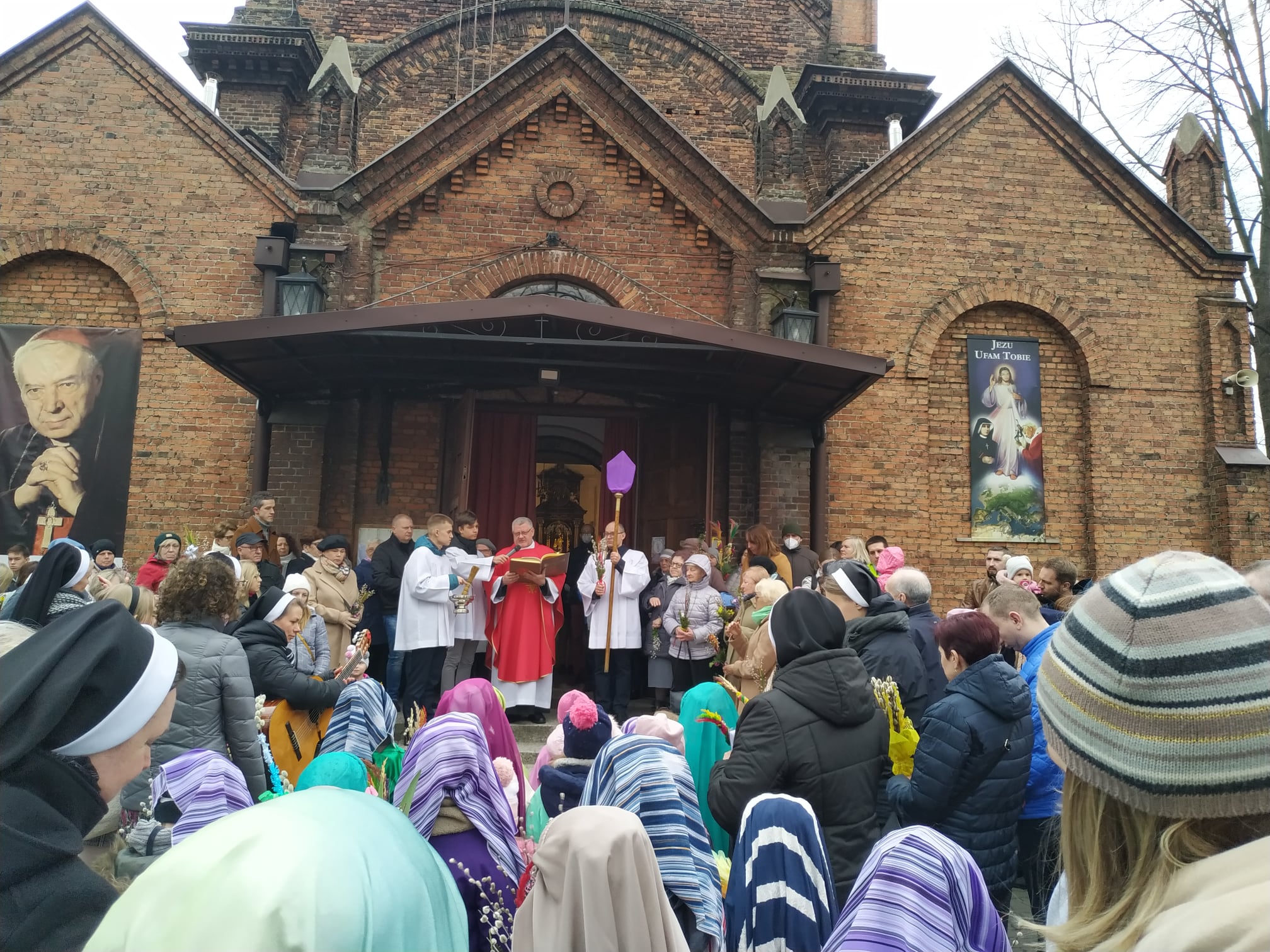 10 kwietnia 2022 r. przypadała Niedziela Męki Pańskiej zwana również Niedzielą Palmową. Rozpoczyna ona najważniejszy okres w roku liturgicznym czyli Wielki Tydzień. Na pamiątkę wjazdu Pana Jezusa do Jerozolimy na początku Mszy Św. odbył się obrzęd poświęcenia palm i procesja wokół kościoła. Uroczystość ubarwiły dzieci z przedszkola nr 10 - sióstr Córek Bożej Miłości.